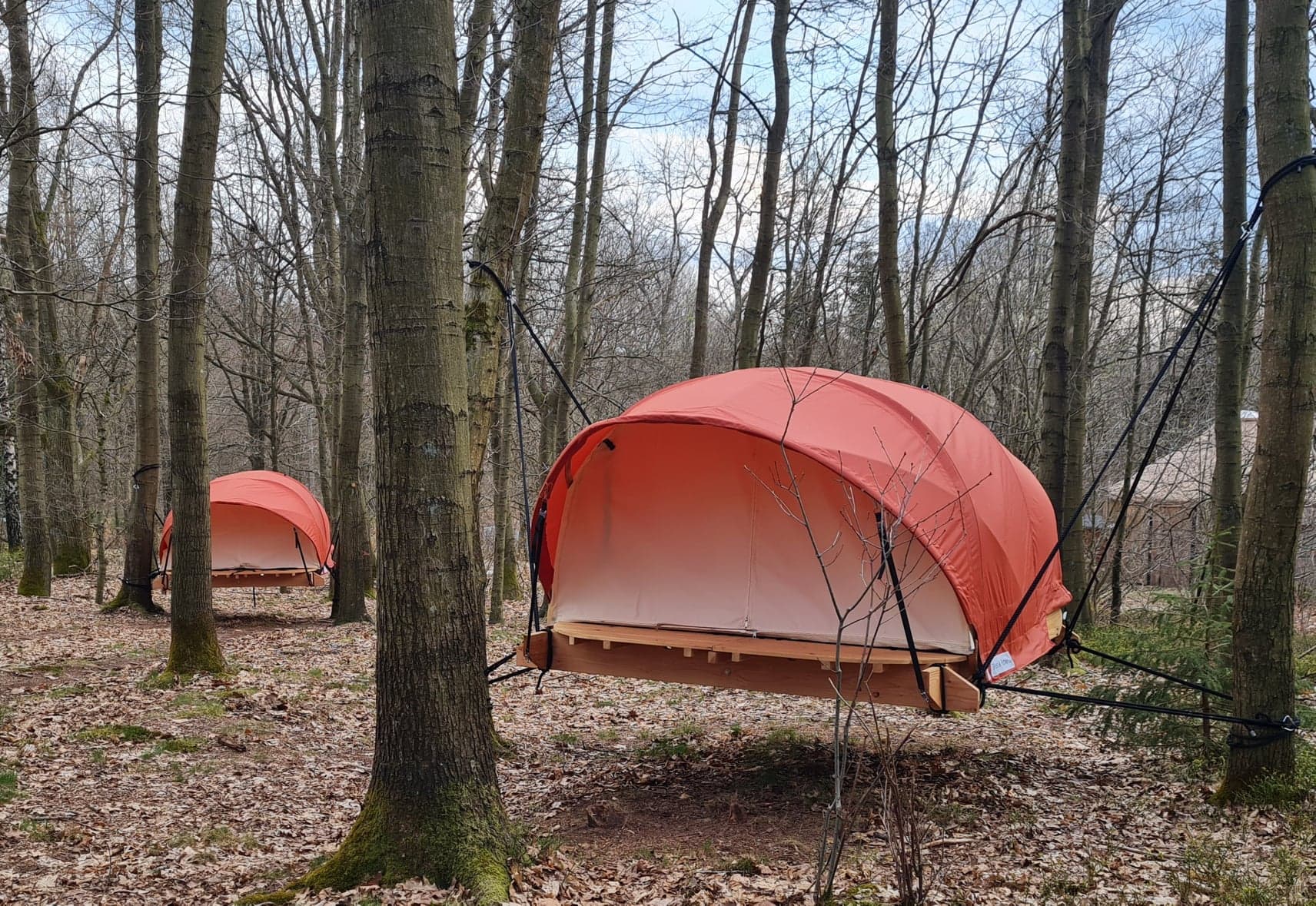 Located near Dinant, the bucolic setting of the Ferme de Pont à Lesse estate, Villatoile offers you the chance to stay in a pod or a hanging tent. These lodgings can accommodate two or three people. Note: these are non-smoking and animals are not permitted.
